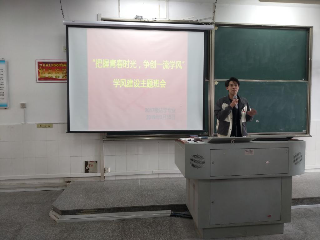 为进一步加强和改进学风建设,3月15日下午,法律系辅导员组织全系各年级召开以“把握青春时光,争创一流学风”为主题的学风建设班会。