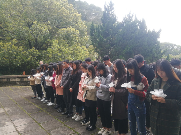 宣誓结束,同学们真诚地向烈士献上手中的白花,并表明定会不忘历史,不辱使命。(土木工程学院 团委吴春榕/文)
