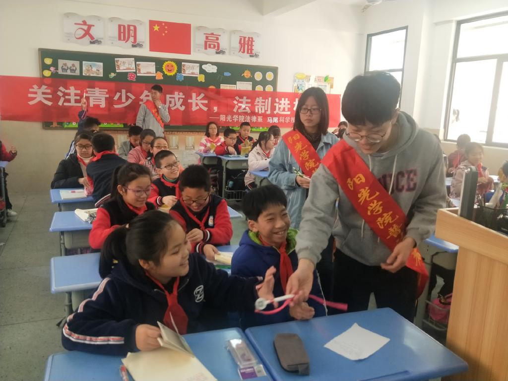 为了贯彻学习雷锋精神,关注青少年成长,阳光学院法律系携手马尾科学技术协会于3月26日走进福州魁岐小学,开展以“未成年人保护法”为主题的校园普法义教活动。