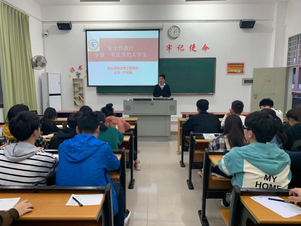 为响应学校开展安全教育工作,提高学生的安全意识,加强安全防范能力,构建和谐平安校园。3月28日,信息工程学院思政辅导员严绍典老师组织学生召开安全教育主题会议,2018级全体学生参加了会议。