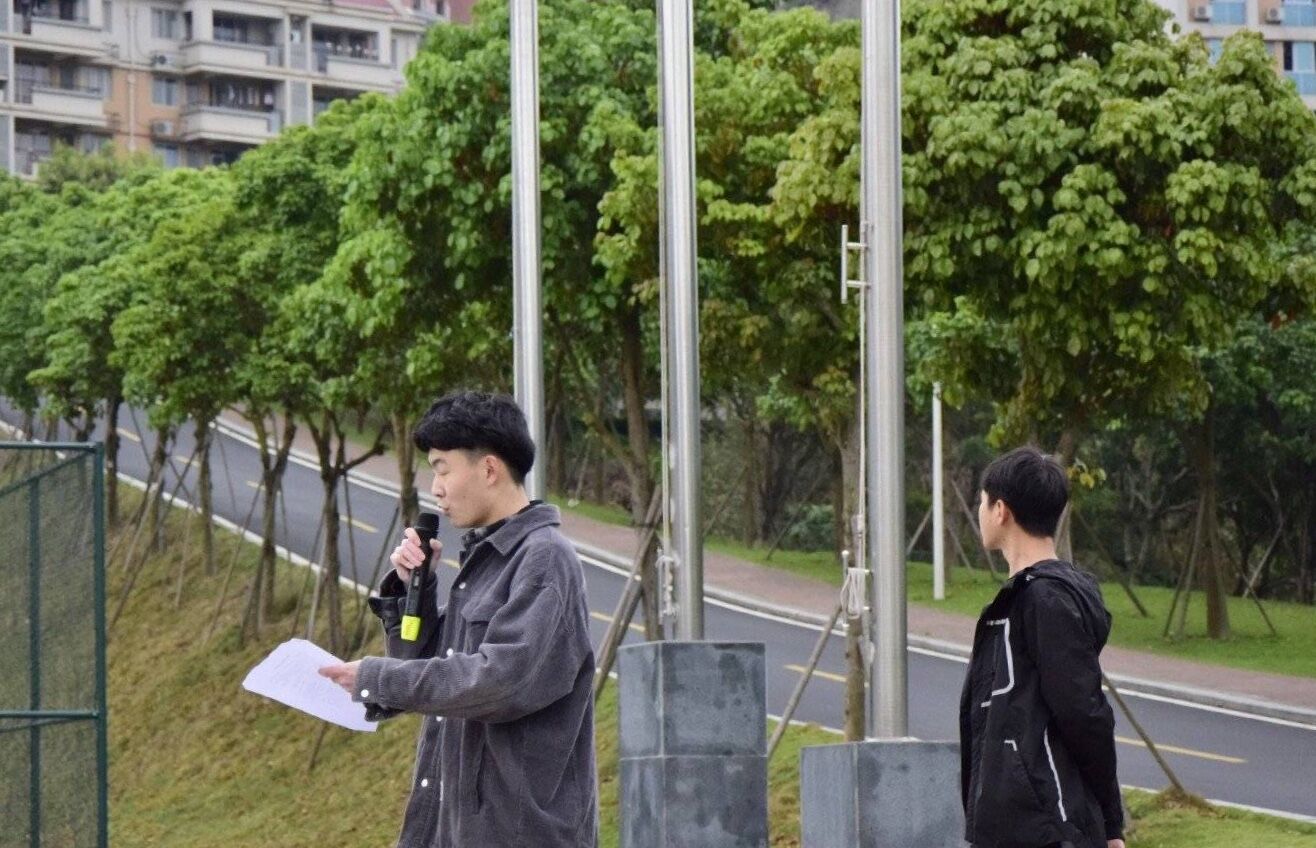 2018级艺术系学生代表徐辰进行了国旗下的演讲。他的演讲表达了对大学生活的憧憬和奋斗的决定,以及上了大学之后的迷茫与懒惰,但最终醒悟且不轻言放弃。并引用朱自清《匆匆》一言:“吃饭的时候,日子从饭碗里过去;默默时,便从凝然的双眼前过去。我觉察他去的匆匆了,伸出手遮挽时,他又从遮挽着的手边过去。”表示时光易逝。在以后的日常工作和学习中,我们应该珍惜时光,好好学习专业知识,珍惜美好的大学生活。