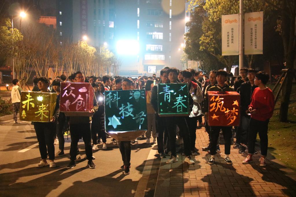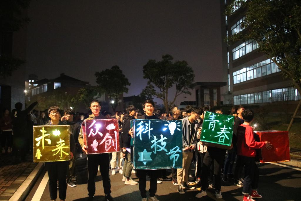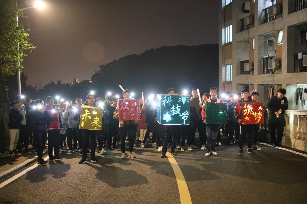 本次宣传活动,各部门干事分红明确,各司其职,有条不紊的进行各项工作;部门之间相互配合、协调,一声声整齐响亮的口号在活动场地此起彼伏,这次活动能够锻炼了干事们的实践能力,而且全面提高了同学们对科技节的了解,在校园内营造出浓烈的科技节氛围。游园活动于晚9点在工A楼前集合完毕,由主席团和干部团带领全体干事进行此次活动,让科技深入到校园内每一处,增强了全校同学对科技的认识与热爱,以培养同学们的创新能力和实践能力为核心作为宣传目标,在全校范围内进行喊楼宣传。每至一处,响起“筑梦科技,众创未来”的口号声。尾声于五期楼前,各部门合影留念结束本次活动。