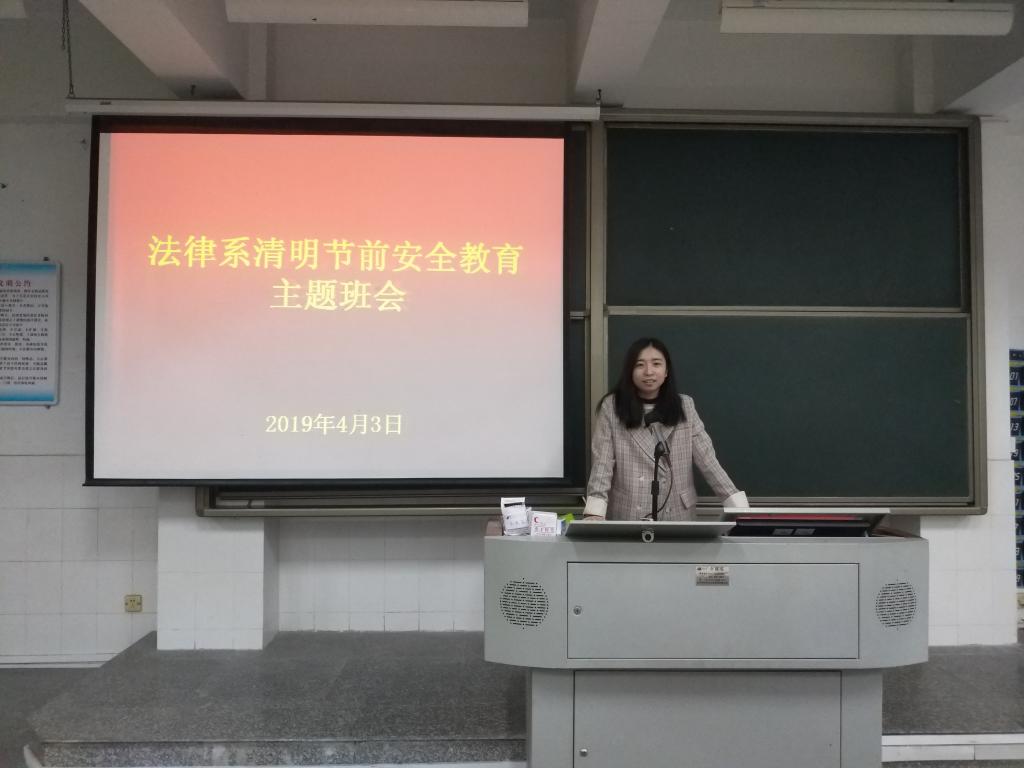 为增强学生的安全意识,提高自我保护能力,法律系在清明节前陆续召开节前安全主题的班会,会议由法律系各级辅导员主持。