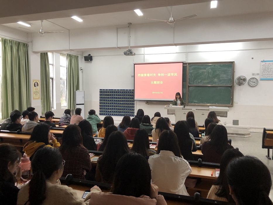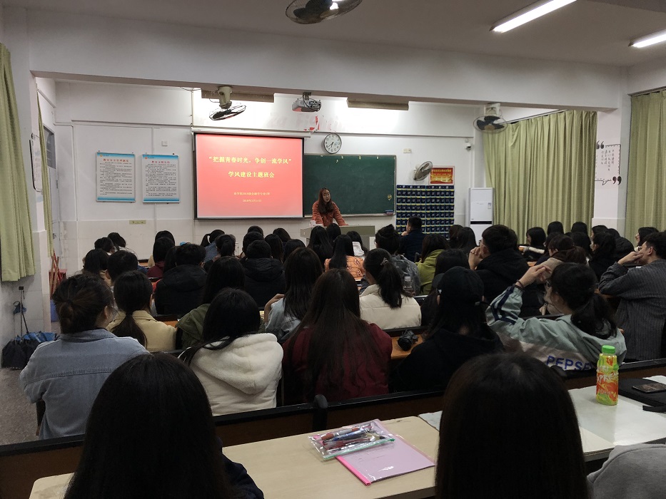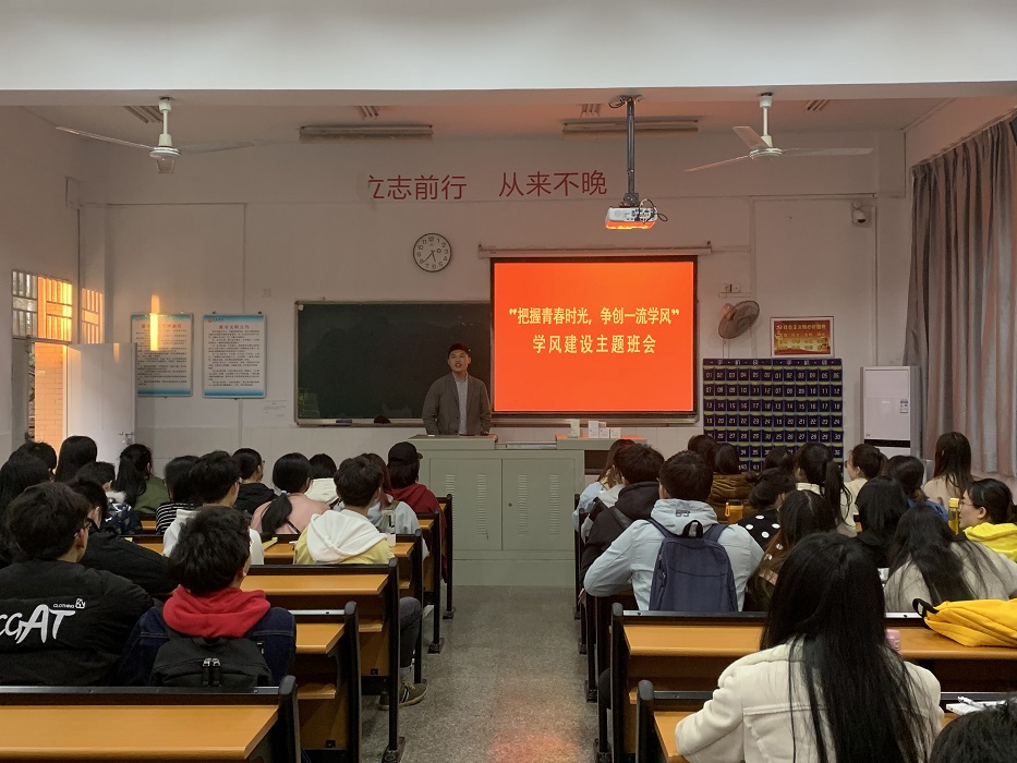 为深入贯彻全国高校思想政治工作会议精神,以社会主义核心价值观为指导,以学风建设教育为重点,加强教风学风联动工作,3月14日至15日,我院各班级举办“把握青春时光,争创一流学风”学风建设主题班会,商学院各辅导员分别担任主讲。
