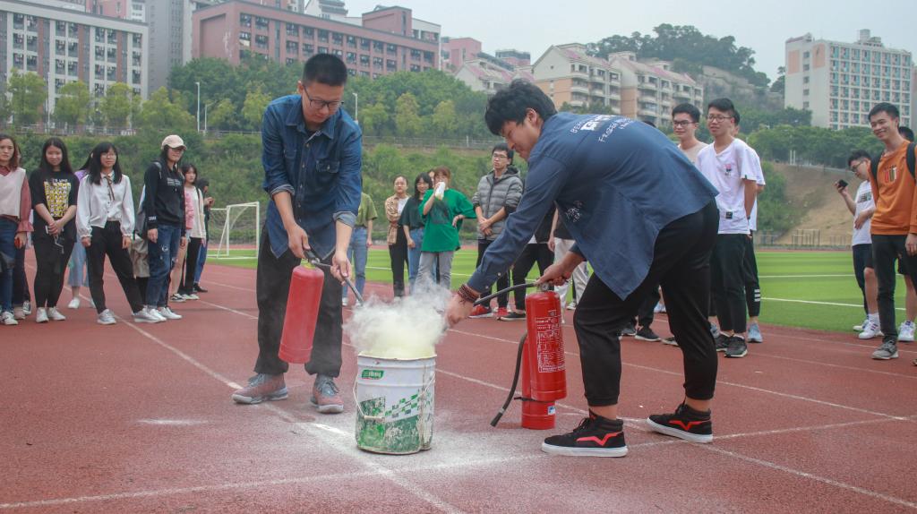 通过组织学生观看消防安全视频,以大量的真实案例使同学对消防安全问题引起重视和深思。同时,法律学生林欣为同学们进行消防安全逃生的技巧讲解,通过“三要”、“三救”与“三不”像大家介绍了逃生的技巧和关键。随后,同学们一同前往东区操场,实地学习如何扑救初起火灾、火场自救逃生为主要内容的消防安全知识,并实地观摩和参与了灭火演练。