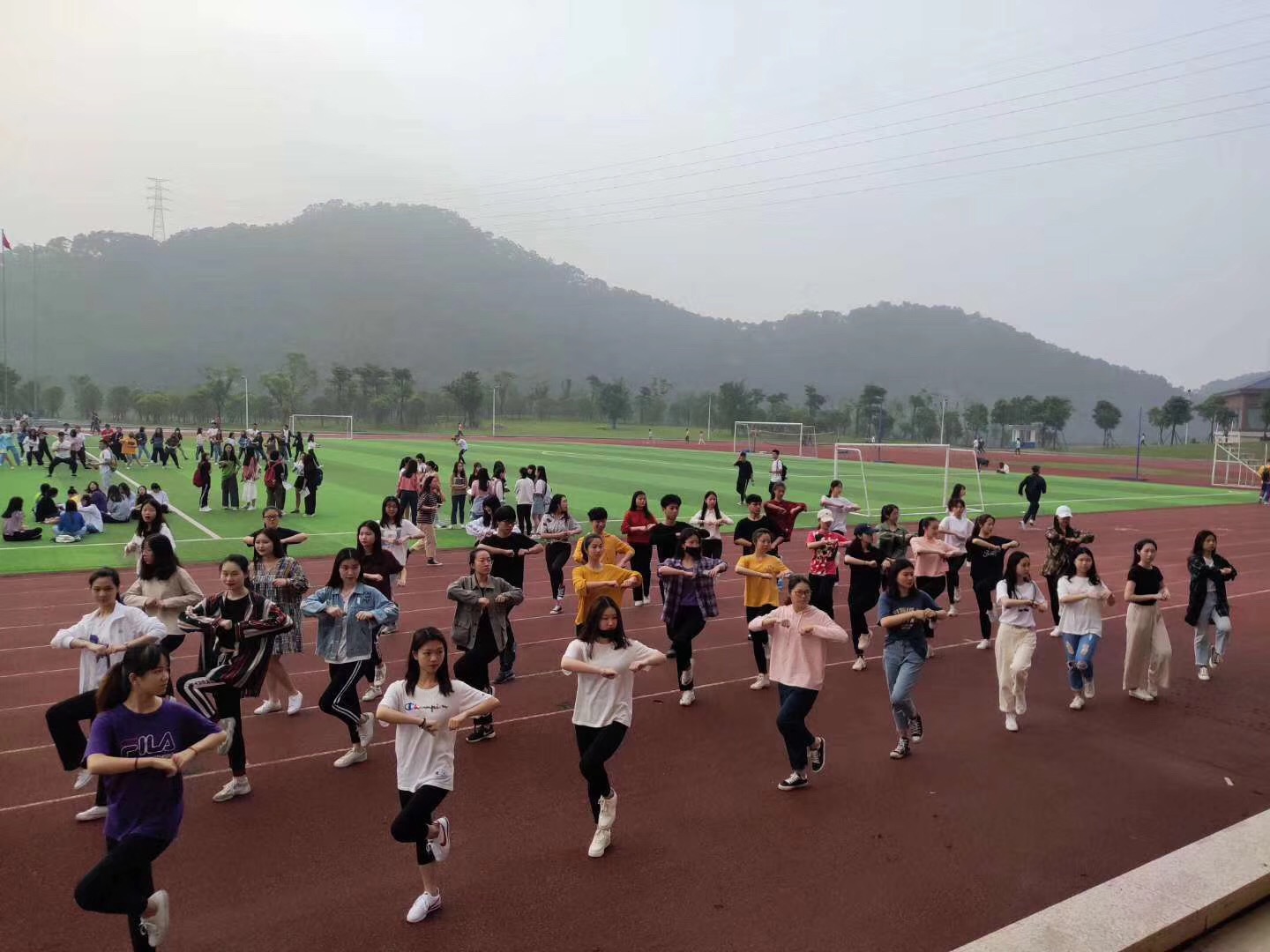 4月22日早上七点,艺术系团委书记郑凯明老师,辅导员郑仕鸿老师以及艺术系团委学生会全体干部干事在操场开展了一次结合艺术系专业特色的不一样的晨练活动。