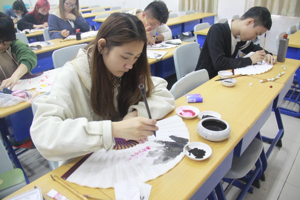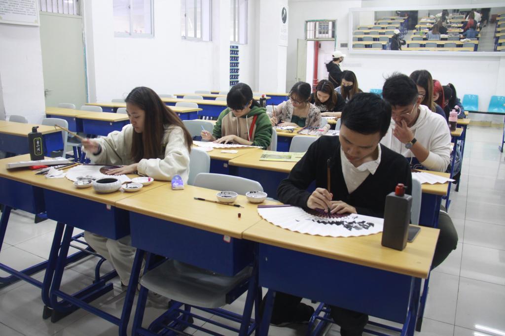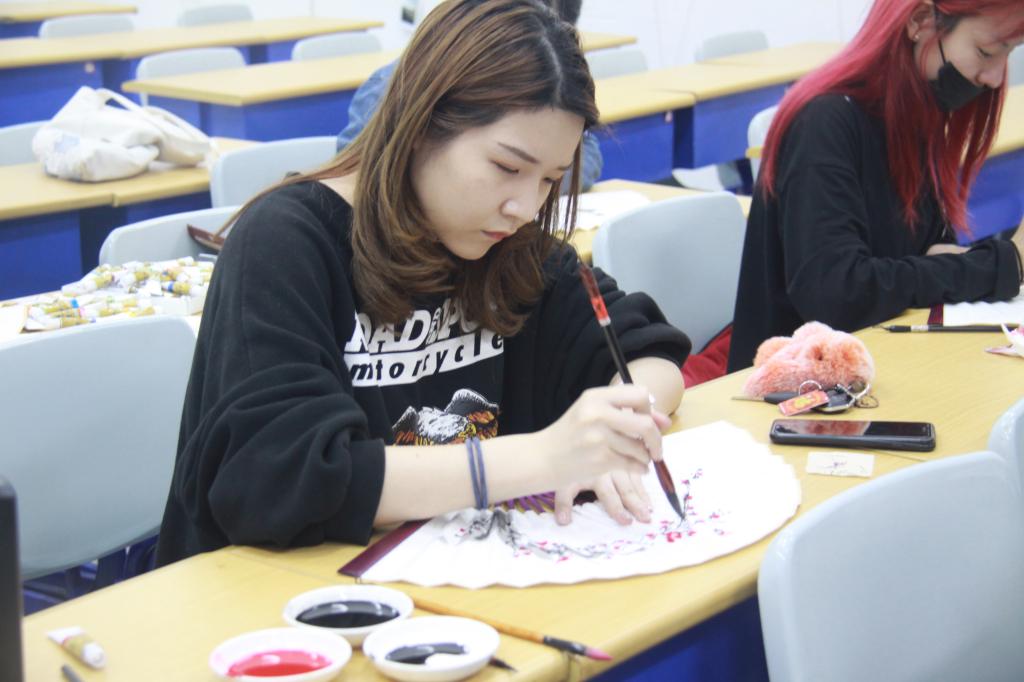 中午12点,比赛正式开始。比赛要求10个参赛选手在一个小时内,围绕比赛主题自由创作。选手们临场发挥,运笔于心,专心致志,一幅幅精美作品跃然于扇面上,不仅彰显了中华传统文化之美,也充分展现了精湛的笔法和扎实的笔墨素养。比赛结束后由陈晓珊老师对选手作品进行现场评审,并且角出一、二、三等奖,以及优秀奖。