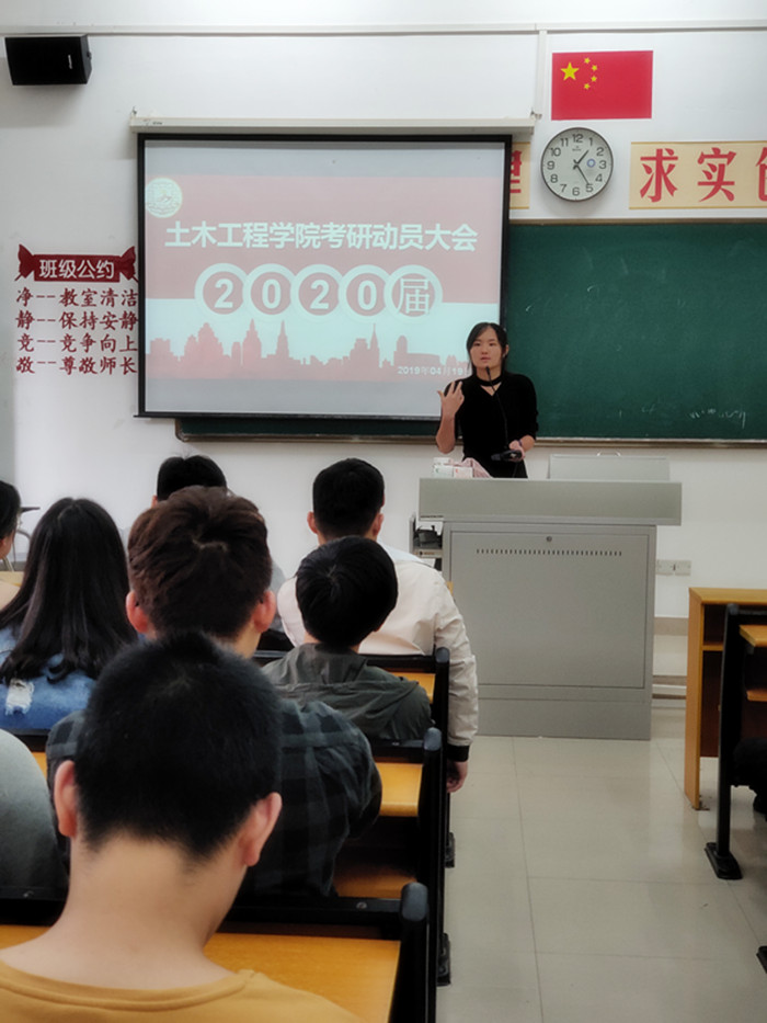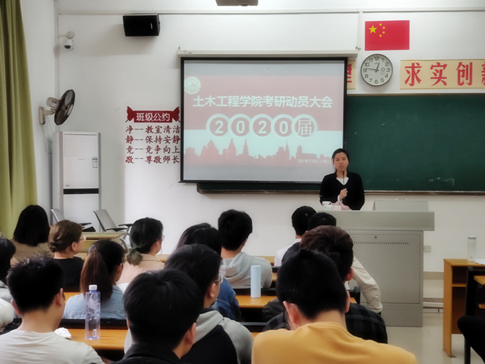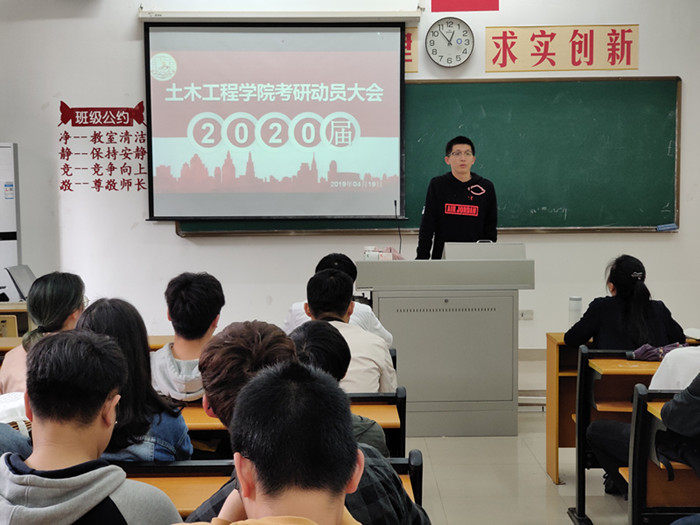 2019年4月19日,我院于工b106顺利召开2020届毕业生考研动员大会。本次大会旨在提高学子考研的积极性,解决我院学子对考研问题存在误区、不解、甚至是困惑并帮助大家看清形势,解除疑惑,端正心态,树立信心,规划自己的未来。