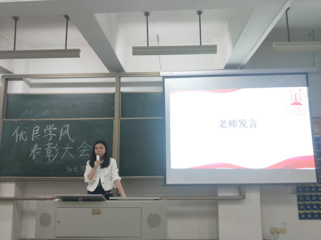 为了加强法律系学风建设,形成良好班风、系风,促进学生的全面发展和健康成长。法律系于2019年4月22日晚上在文科楼104室举行优良学风建设班级表彰大会。法律系党总支书记黄玲老师、法律系团委书记朱恬恬老师、法律系学生辅导员陈辉老师莅临本次大会。