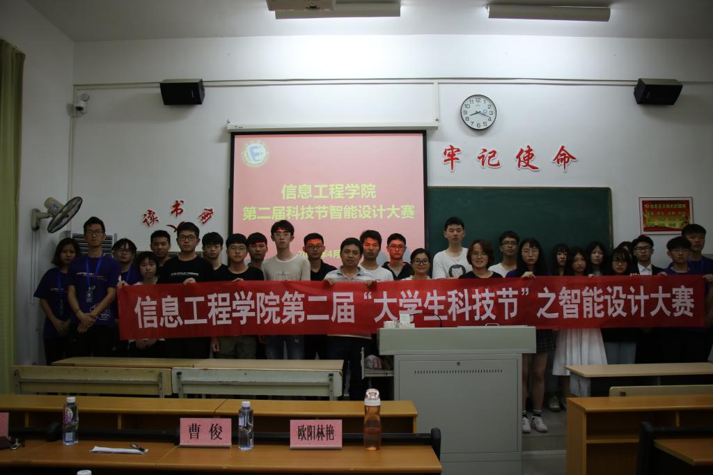 为开阔学生视野、培养创新思维、锻造科研能力,我院于2019年4月25日于工A208教室开展了信息工程学院第二届智能设计大赛,本次大赛邀请了欧阳林艳老师,曹俊老师和俞颖老师出席担任此次大赛的评委。