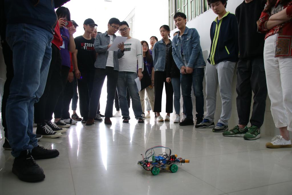 随着一支支参赛队伍的作品调试完毕,本次大赛正式拉开帷幕。首支向评委老师展示的队伍——CFW队,他们的作品《载货小车》凭新颖的设计角度与强大的运载能力获得了在座选手及老师们的一致好评;来自大人物队的《无人机》也以一记完美升空给大家留下了深刻的印象;作品《小车》则以出色的循迹功能和避障能力博得了老师们的肯定。此外,其他队伍也为我们呈现了一场精彩绝伦竞技盛宴。而评委们也在观看测评后对作品进行了全面的点评,并提出了具有可操作性的指导意见。最终,来自开拓者队的《小车》荣获三等奖,《小车》荣获二等奖,CFW的《载货小车》荣获一等奖!