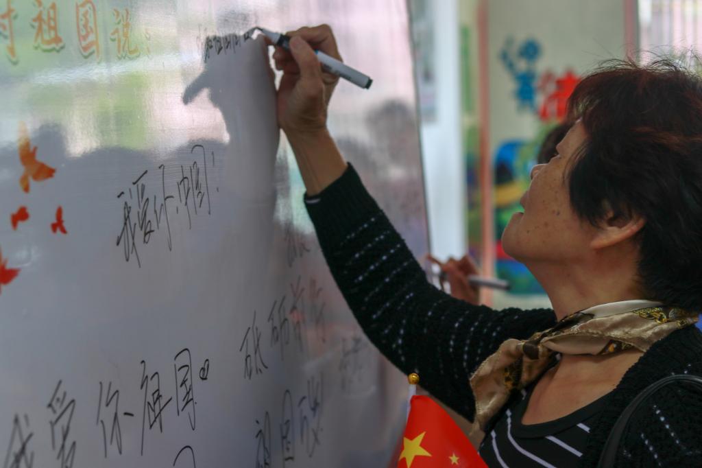 当天下午,法律系学子于沿山社区文化服务中心,合唱《我和我的祖国》。通过视频播放《改革开放40周年成就展》激发广大妇女的家国情怀、爱国热情、民族精神。法律系学子通过诗歌朗诵、礼赞爱国、留言板上留言等多重形式,表达了对祖国美好未来的祝愿。此外,宣传教育活动吸引了马尾电视台记者前来采访,法律系学生代表连悦蕾接受采访中表示:“不忘初心方得始终,祖国经过70年的艰苦奋斗,70年的拼搏创新,造就了70年后繁荣昌盛的中国。我们应该要从小事做起,努力学习,树立远大的抱负和理想,将来有所作为,报效祖国。”随着采访的结束,本次活动画上圆满的句号。