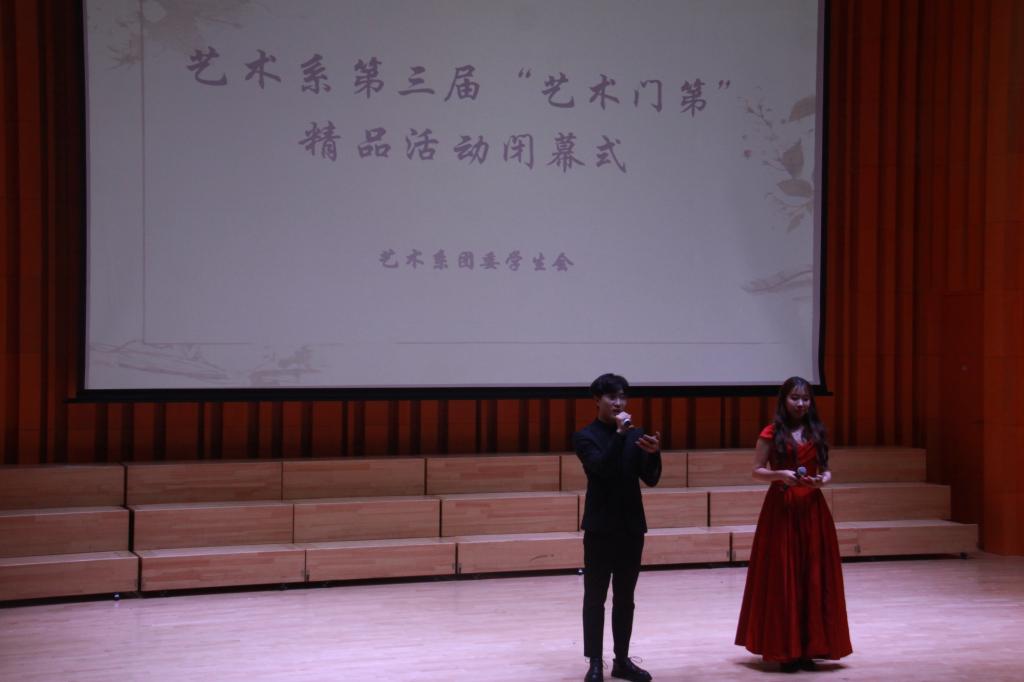 艺术系第三届“艺术门第”精品活动于6月3日晚七点在行政楼音乐厅正式闭幕。本次闭幕式回顾了“艺术门第”精品活动的点点滴滴,同时也为获奖同学颁发了奖状和奖杯。出席闭幕式的嘉宾有艺术系党总支书记宋海霞、学校大学生艺术团指导老师郑逸昕、学校社团联合会指导老师陈建宾及艺术系团委书记郑凯明。