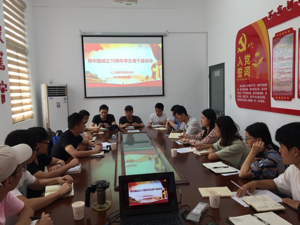 2019年9月28日上午,阳光学院人工智能学院开展庆祝新中国成立70周年学生骨干座谈会在工科楼405会议室举行。人工智能学院党总支书记林辉宗老师以“不忘初心,牢记使命”发表讲话。人工智能学院各辅导员、学生党员出席本次座谈会。