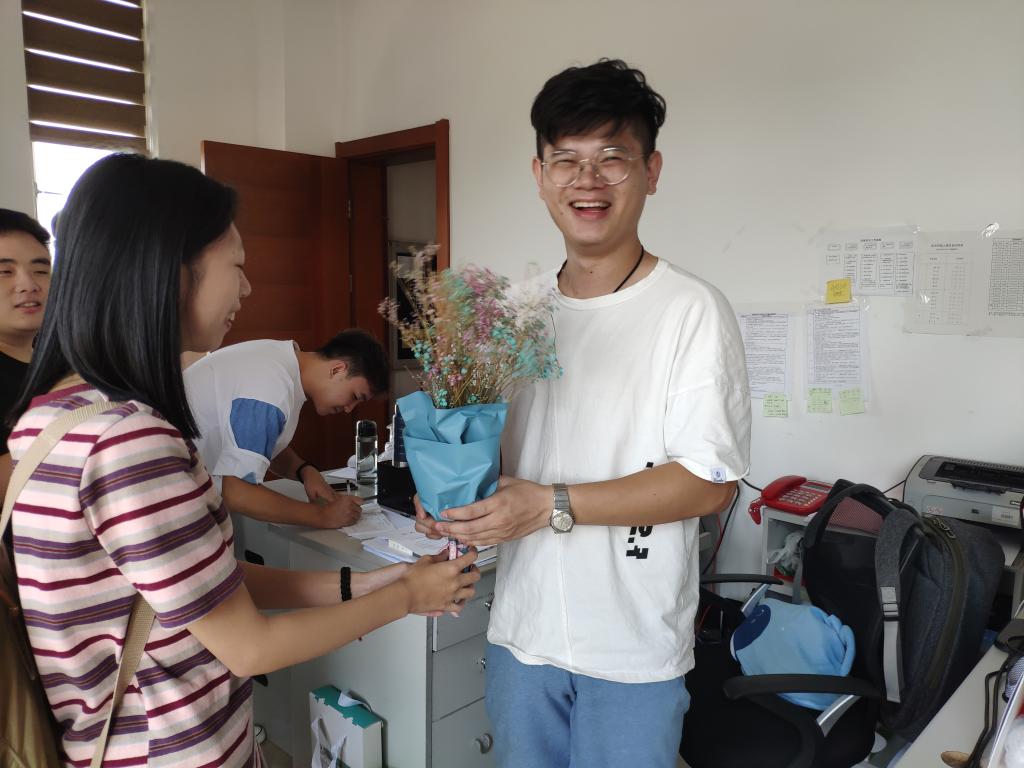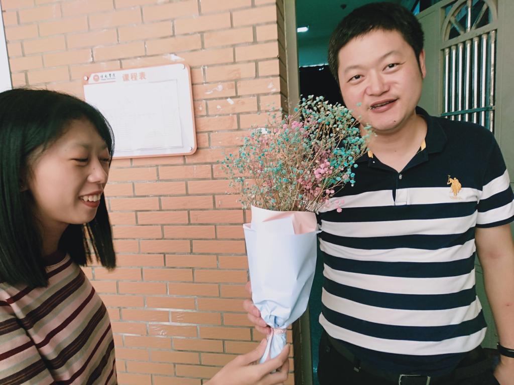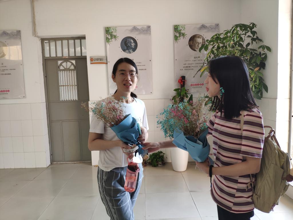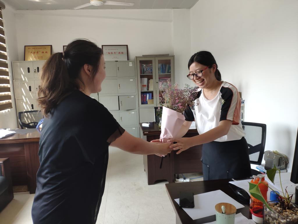 法律系学子自行采购干花材料以及贺卡,精心准备只为在第35个教师节为全系教师献上最真挚的祝福,将自己对老师的真情实感通过精心准备的花束表达对老师的理解、关心和尊重。一束束精美的干花蕴含着感恩,一张张贺卡都记载着心意。教师节当天,学生代表手捧花束走进了办公室,献给兢兢业业、勤勤恳恳的老师们。接过花束的吴晶宇老师感慨道:“没有想到同学们这么用心,作为老师真的很感动,我们会继续加油,也希望同学们继续努力。”