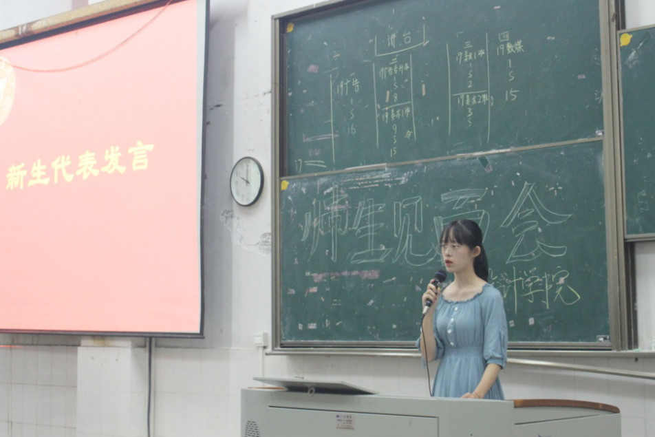 教师代表陈晓珊给全体新生提出了三点建议:一是对于大学生活要有规划;二是对于专业知识要会学习;三是对于人生经历,要知感恩。希望全体新生做新时代的“高富帅”、“白富美”,高于眼界、富于实践、帅在处世,白于品行、富于思维、美在心灵。团委副书记胡烨婷同学结合自身学习、工作经历做了《笑对改变,做更好的自己》主题发言。2019级新生董洋洋代表全体新生感谢老师们和学长们的期待与祝福,并表达了对大学生活的向往、规划,以及励志勤学、为祖国建设添砖加瓦的抱负。