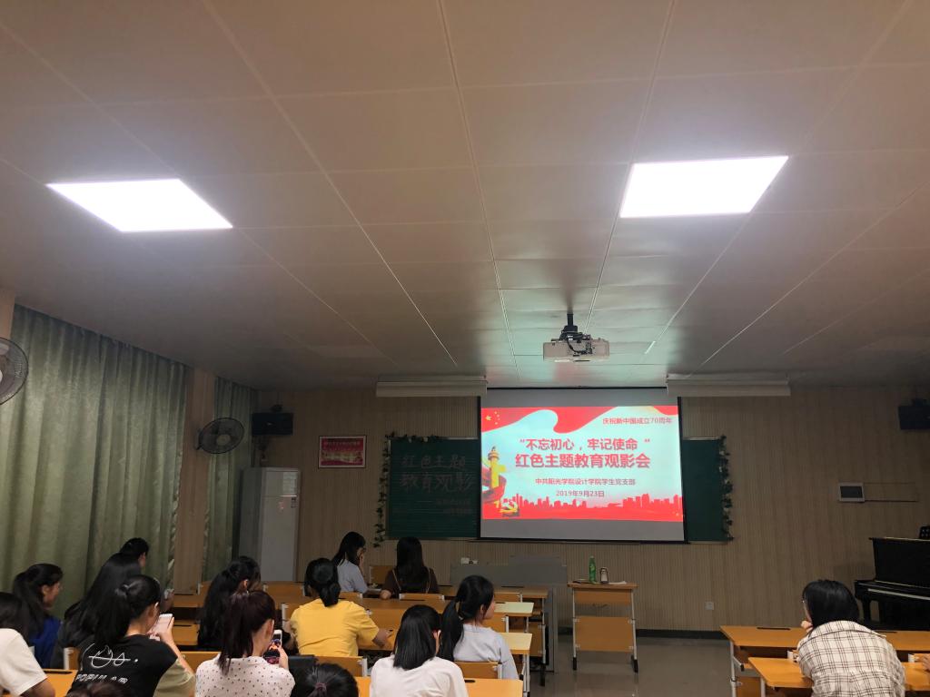 9月23日傍晚,阳光学院设计学院学生党支部于文东实102教室开展“不忘初心,牢记使命”红色主题教育观影会集体观看了重大革命历史题材电影《建军大业》。设计学院全体党员及入党积极分子参加了本次活动。