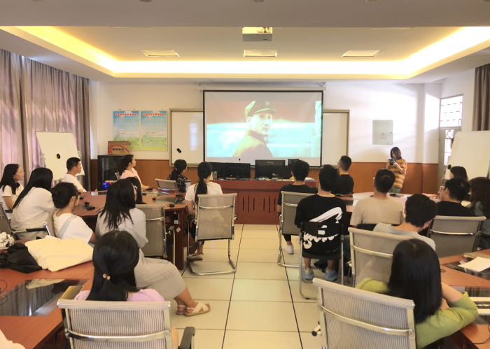 会上,全体师生共同观看《建国大业》和《建党伟业》的片段,当看到1949年10月1日,毛主席在天安门广场上,以高亢的嗓音宣布中华人民共和国成立的那一刻,大家的民族自豪感油然而生。随后,我院学生代表们将学习习近平总书记“不忘初心、牢记使命”的重要论述的心得,与本职工作相结合,畅谈自我的建设,以及对祖国美好未来的憧憬与向往。2016级商务英语专业学生党员周颖同学谈到作为学生党员干部应当如何做践行爱国主义的表率,她提到:“作为学生党员干部,不仅要有过硬的技术知识水平和强大的工作能力,也要将爱国主义和爱国思想贯彻到我们的工作生活中,不仅自己爱国,也要带动身边的人共同为国际奋斗。”2017级商务英语专业班长牛泓淼同学生在红色革命家庭,他讲述他太姥爷当年保护国家、保护党的英雄事迹,他用自己的生命证明了一名共产党人的党性,即使为国家牺牲也在所不惜!对此,他有深刻的感受,他提到:“我们现在处于和平年代,但我们应铭记历史,勿忘国耻,做到居安思危,这是一个民族成熟的表现,并且要努力学习,为国家的建设贡献出自己的一份力。”