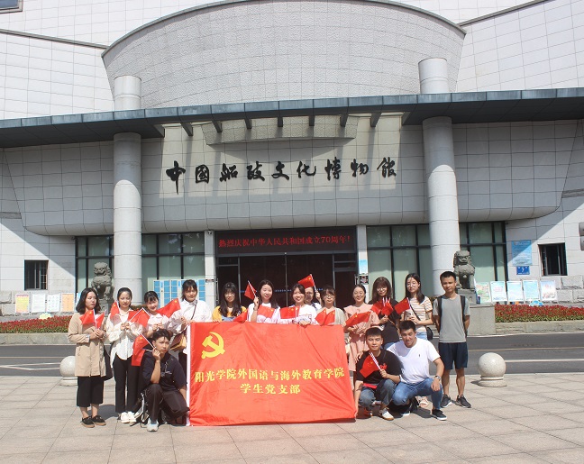 为祖国70周年献礼,阳光学院外国语与海外教育学院党支部结合实际,特举行“重踏历史战场,展放未来风帆”实践活动,颂扬心系祖国的爱国情怀,弘扬和传承中华民族文化。在我院院党总支江烨欣老师的指导下,由学生党支部书记王志坤老师带队,学生党支部及两个高年级党支部全体师生党员于2019年9月30日参观中国船政文化博物馆。