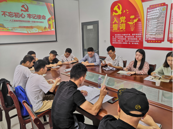 最后,师生党员再次重温入党誓词,提醒自己身为党员要时刻牢记并践行“守初心、担使命”。人工智能学院党总支接下来将进一步把主题教育和学院实际相结合,紧扣立德树人根本任务,通过主题教育锤炼政治品格,激发担当作为,切实把主题教育激发的热情转化为做好工作的强大动力。