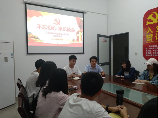 为了积极贯彻落实入党流程规范性,配合学院党建工作的开展。9月30日,人工智能学院党总支在工A405会议室召开“不忘初心、牢记使命”主题教育入党流程征求意见会,各支部书记和学生党员代表参加了本次会议。
