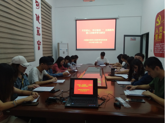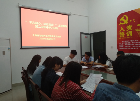 10月12日,人工智能学院大数据与软件工程系学生党支部召开“不忘初心、牢记使命”主题教育第二次集中学习研讨会,支部全体党员参加会议,会议由支部书记雷廷华老师主持。