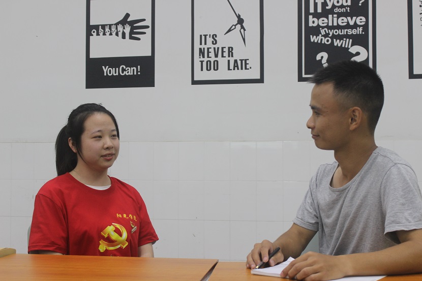 为热烈庆祝新中国成立70周年,深入贯彻习近平中国特色社会主义思想,外国语与海外教育学院党总支在“不忘初心、牢记使命”主题教育中开立“推典型、树标杆”专题活动。在外国语与海外教育学院党总支江烨欣老师的指导下,2019年10月10日在文科楼202教室采访我院优秀学生干部许月——曾获优秀团员和优秀班干部的她,身兼外国语与海外教育学院校友会副秘书长和党总支书记助理的她,在工作上尽心尽力,在学习上勤勤恳恳,为我院学子树立了优秀的榜样。