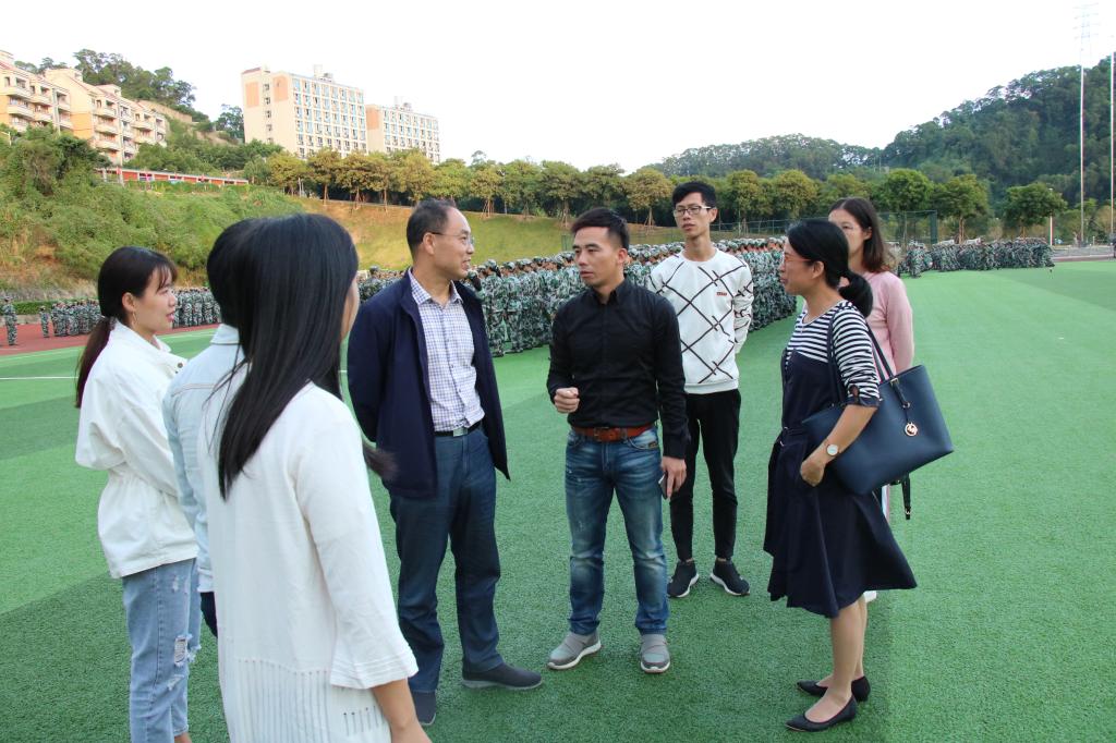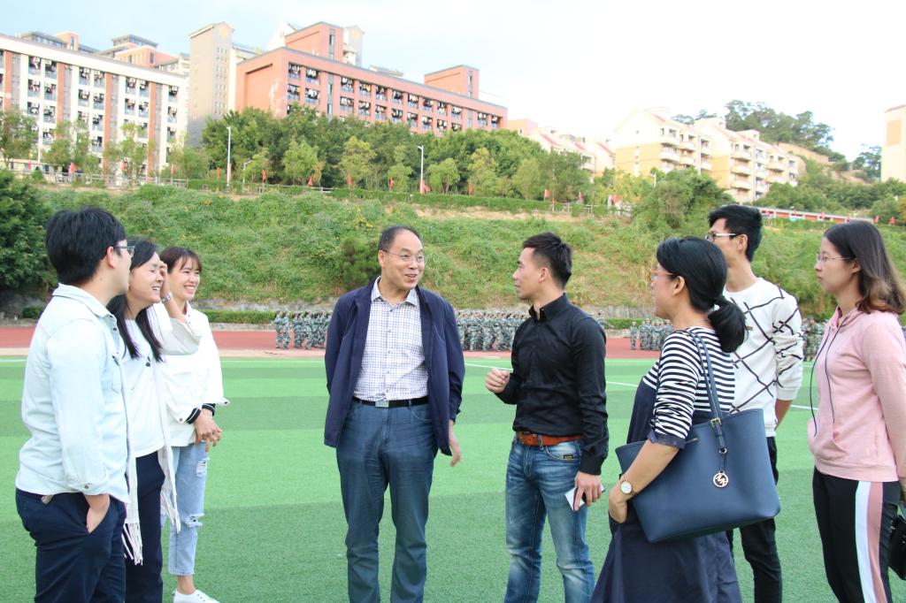 2019年10月15日下午,人工智能学院院长达新宇、人工智能学院党总支书记林辉宗、人工智能学院团委书记沈晓琼在2019级学生辅导员曾瑾、孙益鹏的陪同下,前往东区大操场视察了人工智能学院的新生军训工作,并且慰问了参训学生和教官及指导员。