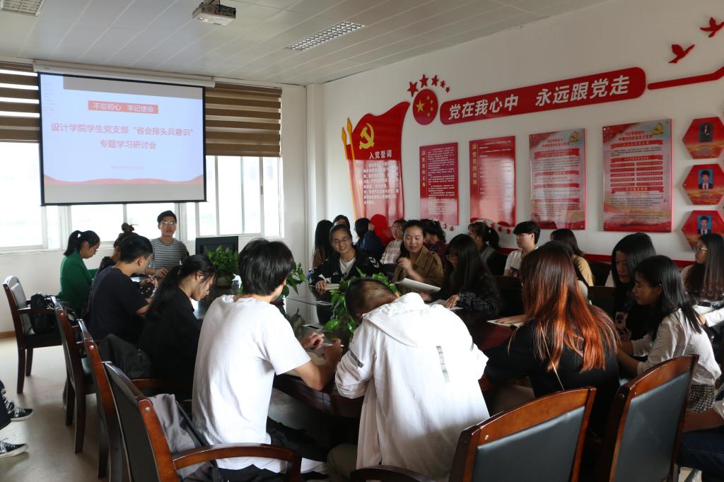 10月22日,设计学院学生党支部在文科楼501室召开“不忘初心、牢记使命”主题教育之“省会排头兵意识”专题学习研讨会。支部书记郑凯明围绕“省会排头兵意识”做主题发言,与会人员结合近期工作和学习交流心得体会。