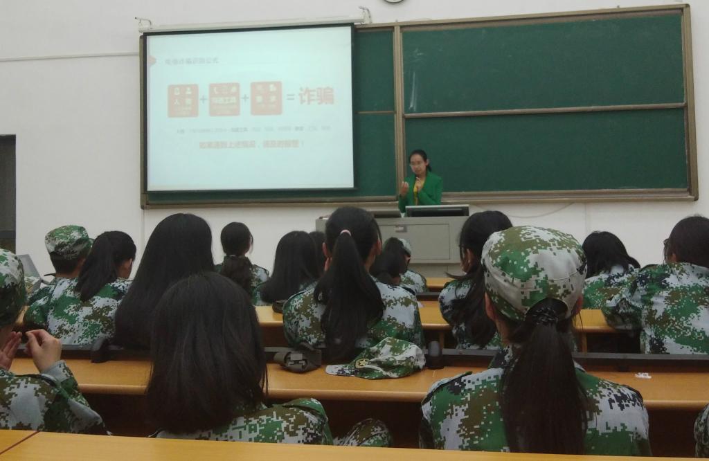 讲座伊始,吴其枝老师就PPT形式讲解什么是电信诈骗、电信诈骗常见形式,并进行了网贷、校园贷的介绍以及如何防范网络诈骗。防范网络诈骗首先就得确定是否为诈骗,吴其枝老师为了让同学们分辨清诈骗行为分享了电信诈骗的通用识别公式:“人物+沟通工具+要求=诈骗“,并告诉同学们遇到这种情况要及时报警。随后,吴 老师讲解了电信诈骗的四个特点:1.犯罪活动的蔓延性比较大,发展很迅速;2.诈骗手段翻新速度很快;3.形式集团化,反侦察能力非常强;4.是跨国跨境犯罪比较突出。告诫同学们要学会与时俱进,不让自己的防骗知识落后与诈骗手段,向同学们介绍了电信诈骗的常见形式以及一系列案例。最后,同学们观看了《被贷走的你》法治微电影,通过真实案例让同学们切身感受校园贷和电信诈骗的危害性。
