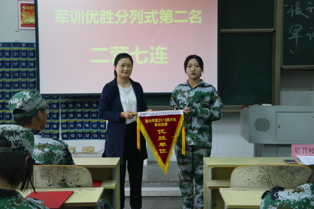 吴其枝辅导员对新生从军训获得的成绩,收获的高昂斗志以及军人作风感到祝贺,希望新生能在了解解放军纪律下严格要求自己并学会团结协作,严于律己,艰苦奋斗,刻苦学习努力工作。党总支书记宋海霞进行大会总结,强调军训是大学生涯的第一课,短短的14天军训将是同学们人生中值得回味的记忆,军训磨练了大家的意志,增强了体质,同时培养了团队凝聚力,希望全体新生能够以此为新的起点,秉持“刚健笃实 辉光日新”的校训精神,不忘学习初心与使命,不断开拓创新,度过充实有意义的大学四年,做一个对社会有用的大学生。