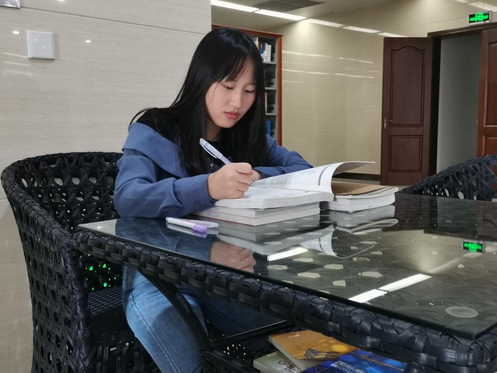 虽然课程很难,平时工作也比较多。但在期末总复习时,她时常帮助学习有困难的同学,分享复习材料给他们,并经常相约一起图书馆学习,共同进步。