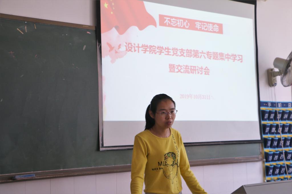 10月31日中午,设计学院学生党支部在文科楼303召开“不忘初心,牢记使命”主题教育第六次集中学习暨交流研讨会。会议主要学习了《中国共产党廉洁自律准则》、《关于新形势下党内政治生活的若干准则》、《中国共产党纪律处分条例》、《坚决彻底反对形式主义、官僚主义》等党内法规。