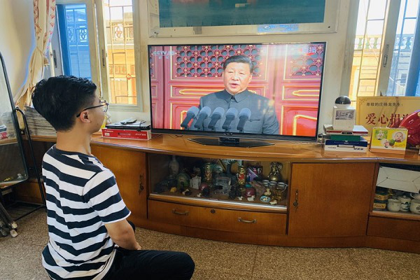 为庆祝中华人民共和国成立70周年大会在北京天安门广场隆重举行。我系学生党支部成员通过网络、电视、手机等在宿舍、家中收看庆祝大会直播。当整齐的阅兵方阵经过天安门广场,当缓缓升起的五星红旗在微风中飘扬,当国歌的旋律响彻天际,每一位中国人心头的自豪,伴随着跳动的赤子之心,在此刻愈发振奋。