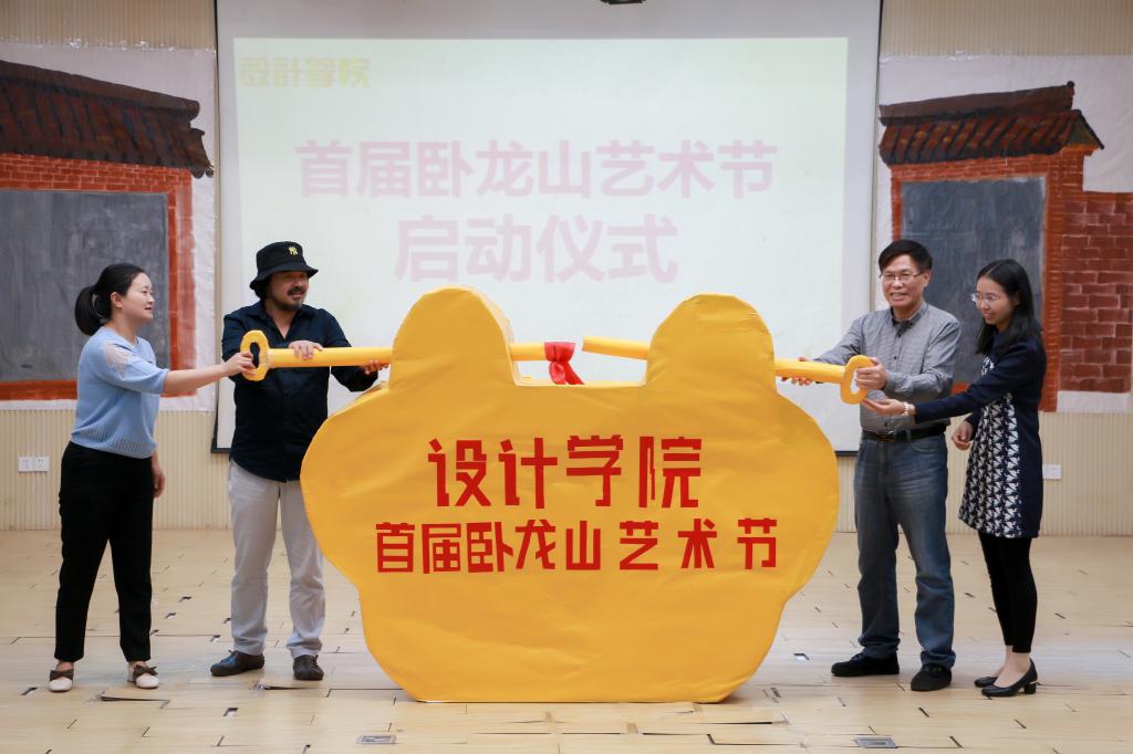 翁炳峰教授、卢健涛副教授、党总支书记宋海霞、团委书记吴其枝共同开启了卧龙山艺术节之“锁”,意蕴设计学院首届“卧龙山艺术节”正式开幕。