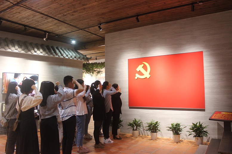 潮江楼是省级革命历史遗址、福州市级革命历史纪念地,福州籍党的早期领导人、中国工人运动的杰出先驱、中央监察委员会首任主席王荷波同志从事革命活动的重要遗址,楼内主要布有“品重柱石”——王荷波烈士事迹展,是新时代教育引导党员干部不忘初心、牢记使命、传承红色基因、永葆政治本色的重要场所和鲜活教材。参观开始,江烨欣老师带领我院的师生党员面向党旗,举起右手,重温入党誓词。接着,师生党员随着展馆的足迹,一起回首革命先辈的光辉战斗历程,接受了一场深刻的精神洗礼。