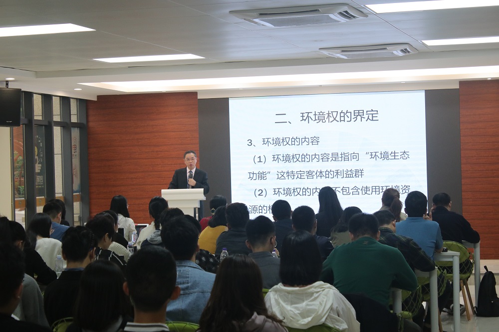 11月8日下午,由中国政法大学环境与资源法学博士生导师、联合国环境署—中国政法大学研究基地主任、中国政法大学环境与资源法服务中心主任王灿教授做“生态文明建设与环境法治”的主题讲座。他分享了自己1999年创建中国政法大学环境与资源法服务中心(CLAPV)以来长达二十年参与环境公益法律服务的心得体会,认为虽然新《环境保护法》实施后,公众参与生态文明建设与环境法治迎来了改革开放后的黄金时代,但提出了更高更专业的要求。他通过具体的案例与听众进行了互动,一同探讨了作为法律人如何提供专业服务,应当遵循哪些职业道德,从而成为生态文明建设关键的积极力量等问题。讲座引发了听众热烈反响。