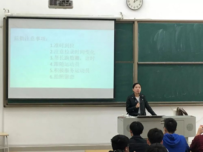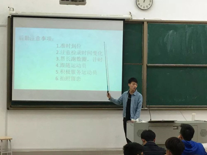 接着,田径队队长庄凯喆同学就今年运动会的变动情况与运动员可能会面临的突发情况进行讲解。