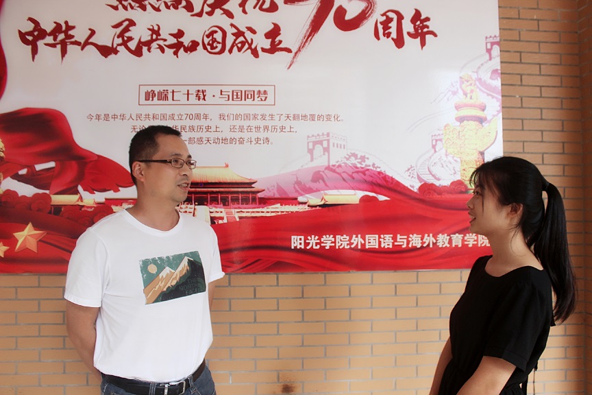 为热烈庆祝新中国成立七十周年,深入贯彻习近平中国特色社会主义思想,进一步加强外国语与海外教育学院教师的自身建设,调动积极性,更加的用心、努力的参与工作,增强工作的积极性和创造性,也促进教师、学生干部之间的学习、交流和协作。2019年10月31日外国语与海外教育学院党总支以“推典型、树标杆”专题采访了我院优秀教师王枫老师。