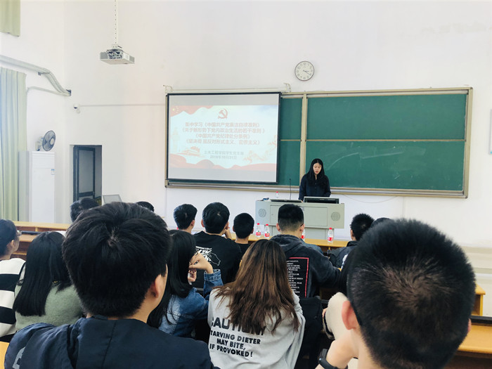 10月31日,土木工程学院学生党支部在工A408会议室召开学习会议,集中学习了《中国共产党廉洁自律准则》、《关于新形势下党内政治生活的若干准则 》、《中国共产党纪律处分条例》、《坚决彻底反对形式主义、官僚主义》等党纪党规。