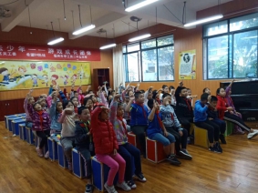 下午3点45分课程正式开始,参加合唱班的学生多达六十余名,课上志愿者先就认识简谱、学习节奏开始,让学生从基础的乐理知识开始学习,随后就歌曲《让世界充满爱》进行教唱练习。