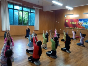 舞蹈班共有二十余名学生参与其中,一进入教学环节学生立马被老师优美的舞姿吸引,认真的跟随老师学习舞蹈组合动作。
