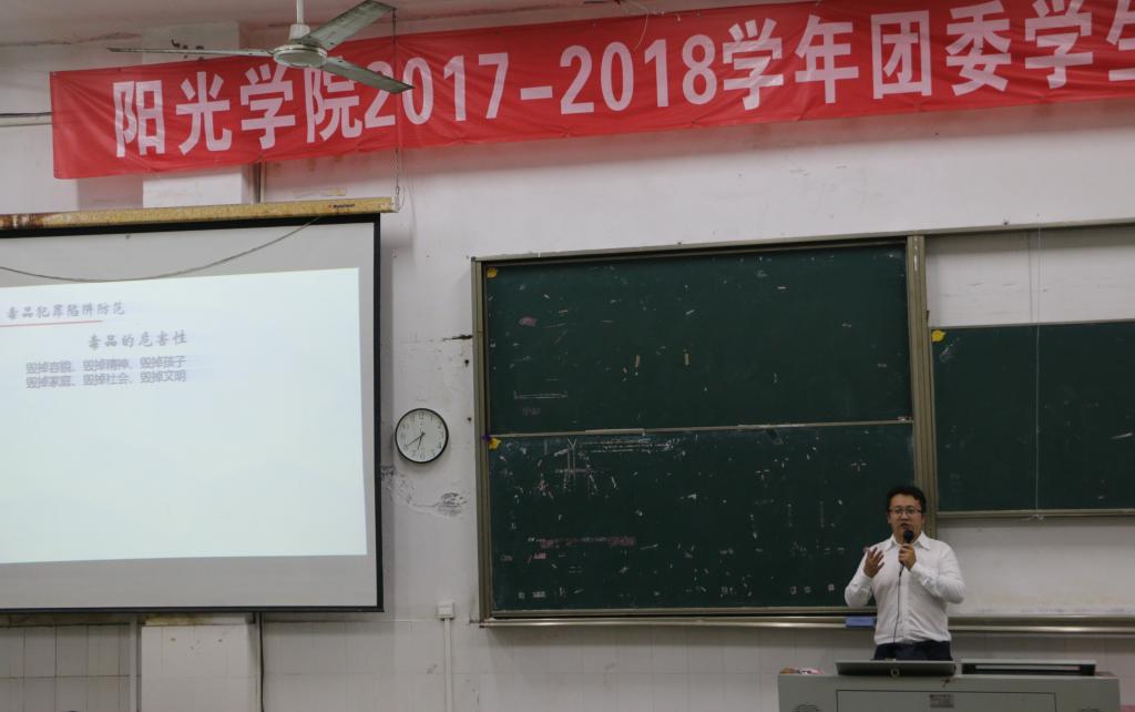 为了让同学们认清毒品,贷款,诈骗的危害,设计学院于11月18日晚在学校商学楼308教室举行法治安全教育讲座,讲座由法律系李峰老师主讲,2016级、2019级全体学生参与此次宣传讲座。