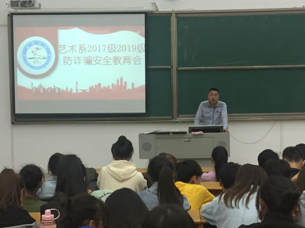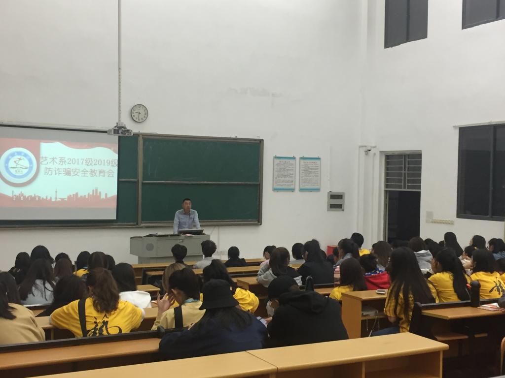 2019年11月24日,艺术系于工科楼B楼207教室召开“防诈骗安全教育”主题大会,会议由辅导员陈振伟老师主持。会议参与人员为2017级及2019级艺术系全体学生。