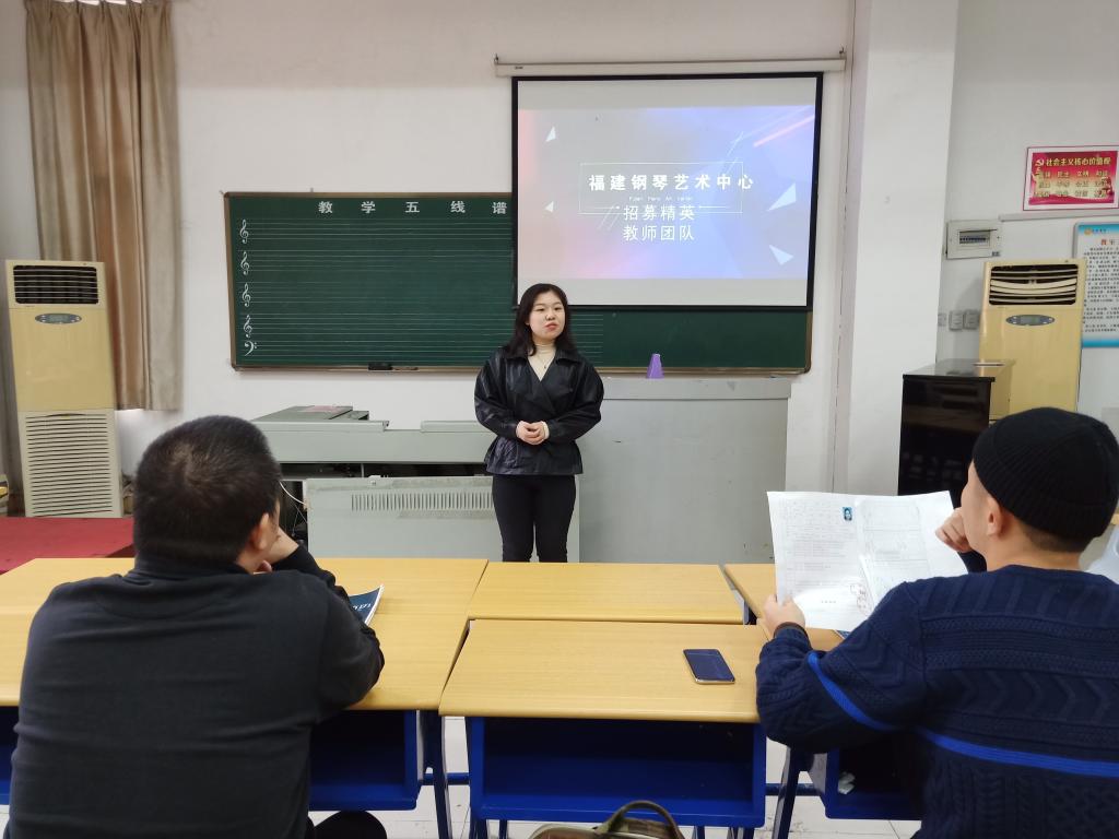 11月25日下午,福建钢琴艺术中心于阳光学院艺术系举办了专场招聘会,艺术系16级音乐学专业、18级音乐学专升本学生代表参加了此次招聘会。