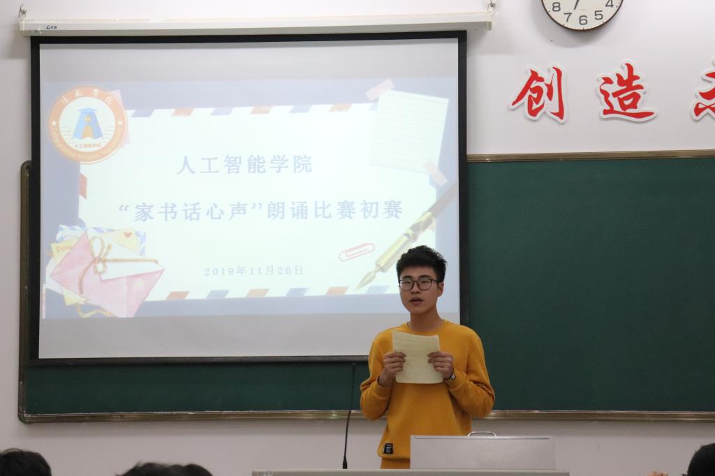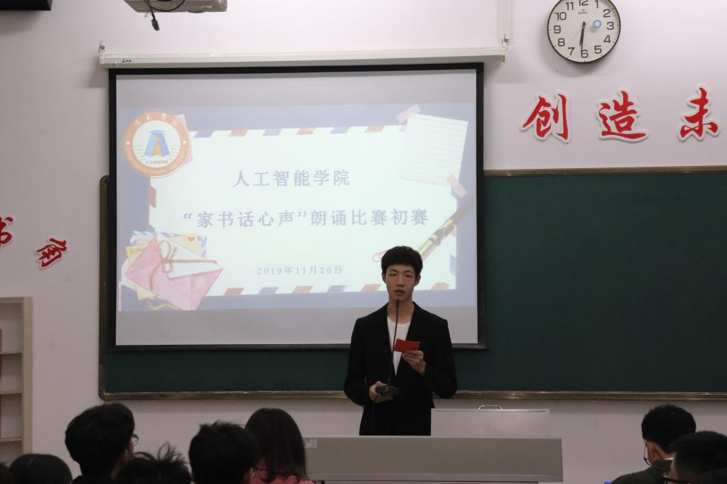 为了贯彻习近平总书记关于家风建设的重要讲话精神的具体举措,促进学生优良品德形成,阳光学院人工智能学院于11月26日在工科楼208举办了“家书话心声”朗诵比赛。人工智能学院团委书记沈晓琼老师、新生辅导员孙益鹏老师、团委学生会主席团等嘉宾莅临比赛现场并出任本次比赛评委。