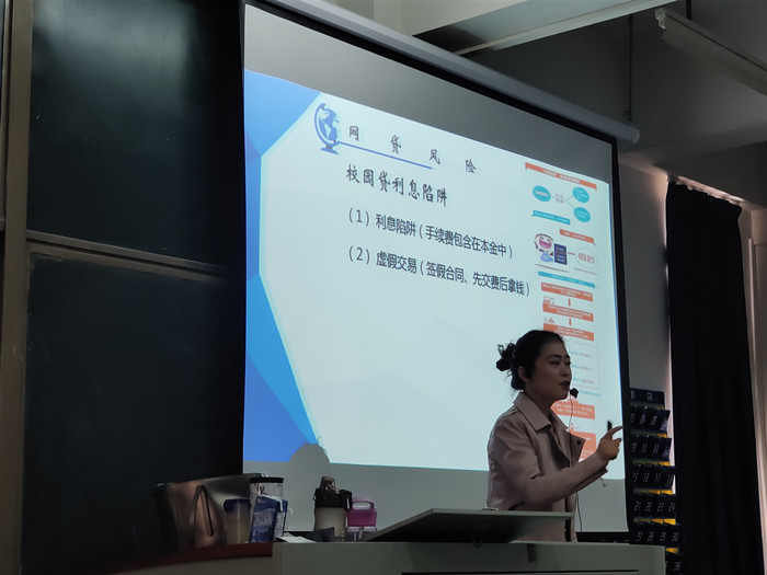 陈佳婧老师主要围绕“犯罪陷阱防范”“欺诈风险防范”两大部分内容为同学们解答了如何防范毒品犯罪陷阱、规避兼职中的犯罪风险,以及剖析了网贷、刷单存在的不正当行为以及风险。