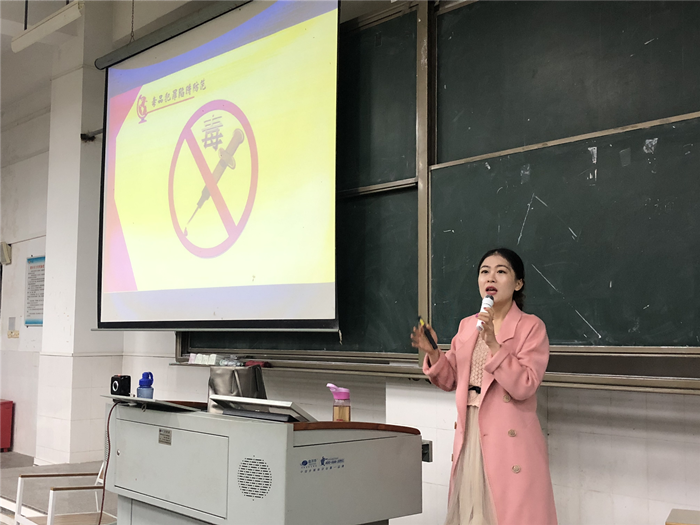 首先,陈老师给同学们列举了常见的毒品种类,并讲解了伪装成生活日用品、食品的毒品是如何让人们走上吸毒的道路,以此警示同学们。其次,介绍了大学生关注的兼职中的诈骗圈套。陈老师称,诈骗分子往往会利用同学们的消费需求设置兼职陷阱,以刷单、二维码洗钱等方式引诱学生受骗。接着,陈老师重点给同学们讲解了校园贷、套路贷、裸贷、传销贷等贷款骗局。通过列举一个个在校学生因刷单、交友不慎、裸贷等引发的典型受骗案例,播放一个个真实的案件视频,教授同学们防骗、谨慎交友的常识,教育学生要规范个人的行为,提高自我保护意识和能力。
