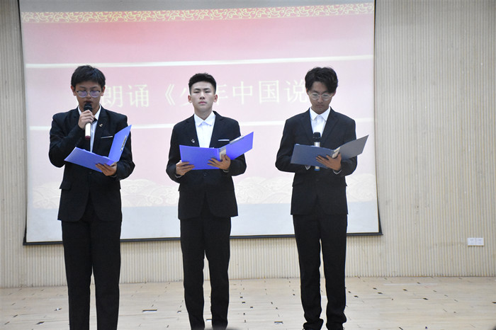 大会最后,由苏诗阳同学、黄启江同学与兰东飞同学带来诗朗诵《少年中国说》。词辞铿锵、顿挫抑扬,朗不完土木少年顽强拼搏精神形象,颂不尽土木学子全力以赴共创辉煌。