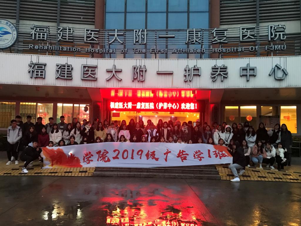 2019年12月5日下午,设计学院2019级广告学1班全体成员在班委的带领下来到福建医大附属第一康复医院进行慰问老人的志愿活动,活动由班长林岳炀、团支书陈泽佳组织,全体成员参加。